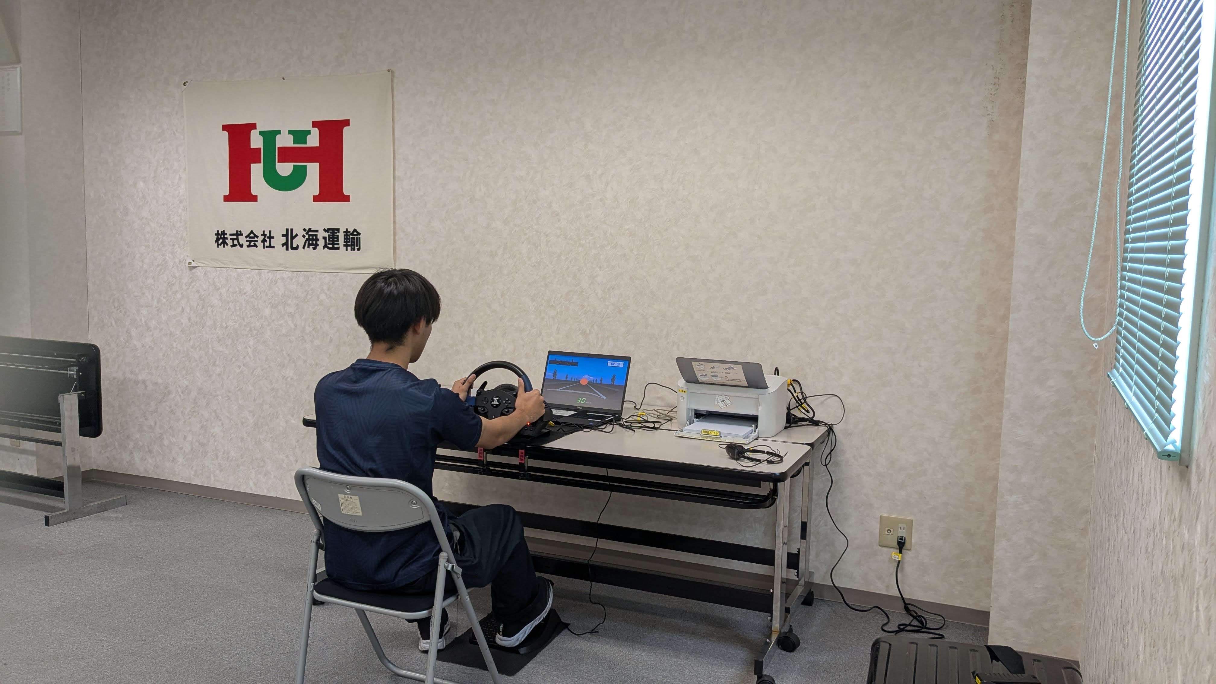 下の画像は、あいおいニッセイ同和損害保険様よりご貸与いただいた運転シミュレーターを使用している様子です。