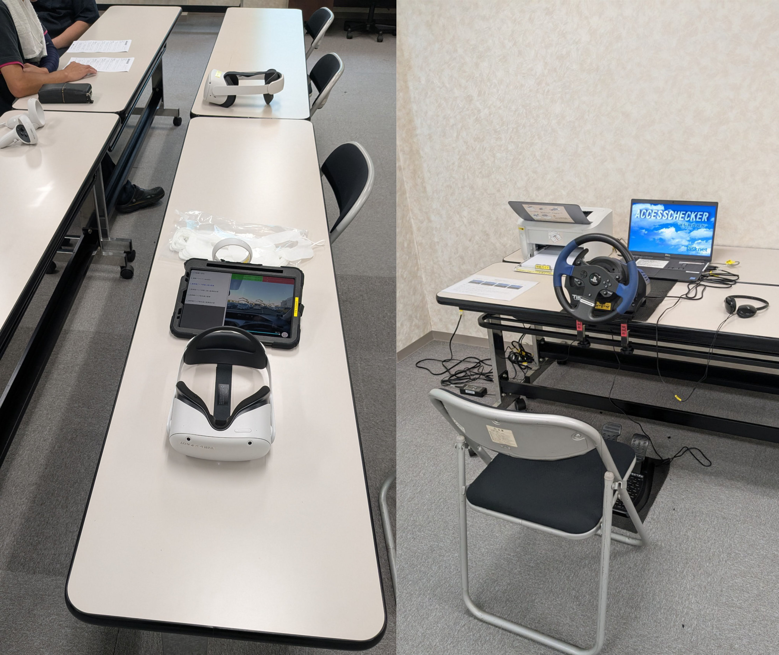 下の画像は、あいおいニッセイ同和損害保険様よりご貸与いただいた運転シミュレーターを使用している様子です。